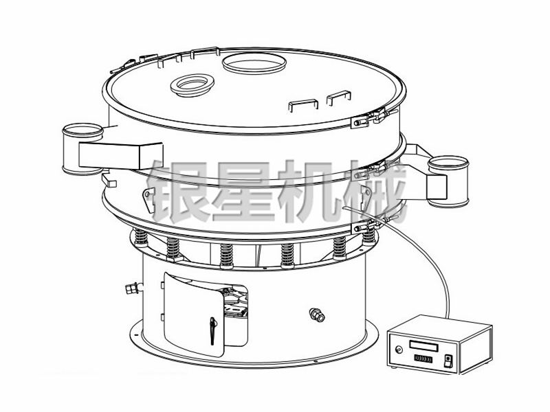 旋振篩的基本回轉(zhuǎn)運(yùn)動與人工篩分相似,利用380V電動機(jī)帶動擺振體來產(chǎn)生三維搖擺作用,三維搖擺使物料在篩網(wǎng)上呈現(xiàn)弧形漸開線搖擺運(yùn)動軌跡,物料在搖擺運(yùn)動過程中達(dá)到預(yù)期篩分過濾的效果。搖擺旋振篩本身的運(yùn)動軌跡為橢圓型,每一種產(chǎn)品的停留時間可以調(diào)整擺振體上面的經(jīng)向角和切向角可改變物料在網(wǎng)面上的運(yùn)動軌跡,偏心率從25到40mm可調(diào),低速V型皮帶驅(qū)動從120到360rpm可隨意調(diào)節(jié)。篩分物料從中心到外緣在篩面上均勻分散是以螺旋運(yùn)動往軸向傳播形式分散,接近篩孔尺寸的顆粒隨之成功分離;較大不透篩孔顆料被運(yùn)送到上篩面出口處排出,穿透過篩孔物料降落到下層篩面進(jìn)行篩分。